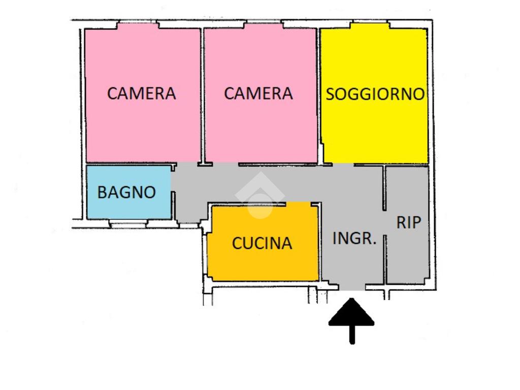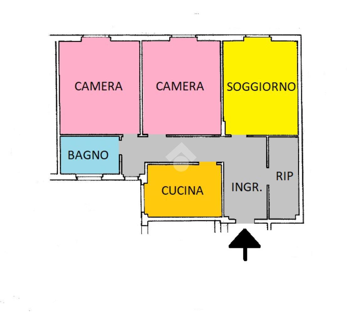 L'immobile è composto da un ingresso che conduce ai vari ambienti, sulla destra troviamo un comodo ripostiglio, proseguendo il soggiorno, un'ampia camera matrimoniale, successivamente la seconda camera, sulla sinistra la cucina ed infine il bagno.